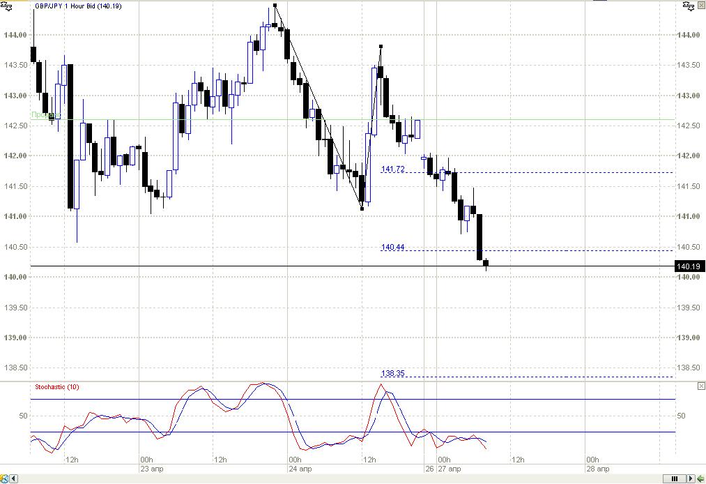 | Евро/фунт падает и фунт/йена соответственно ростёт. По Фибоначчи идёт откат - упёрлись в 38.2 (цена 141.50) и назад